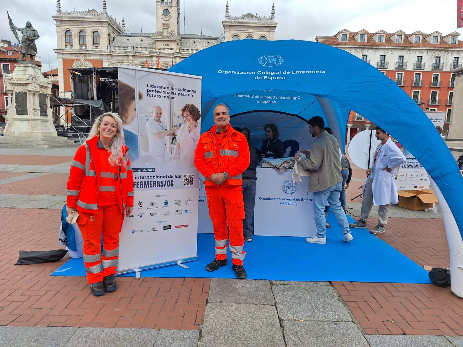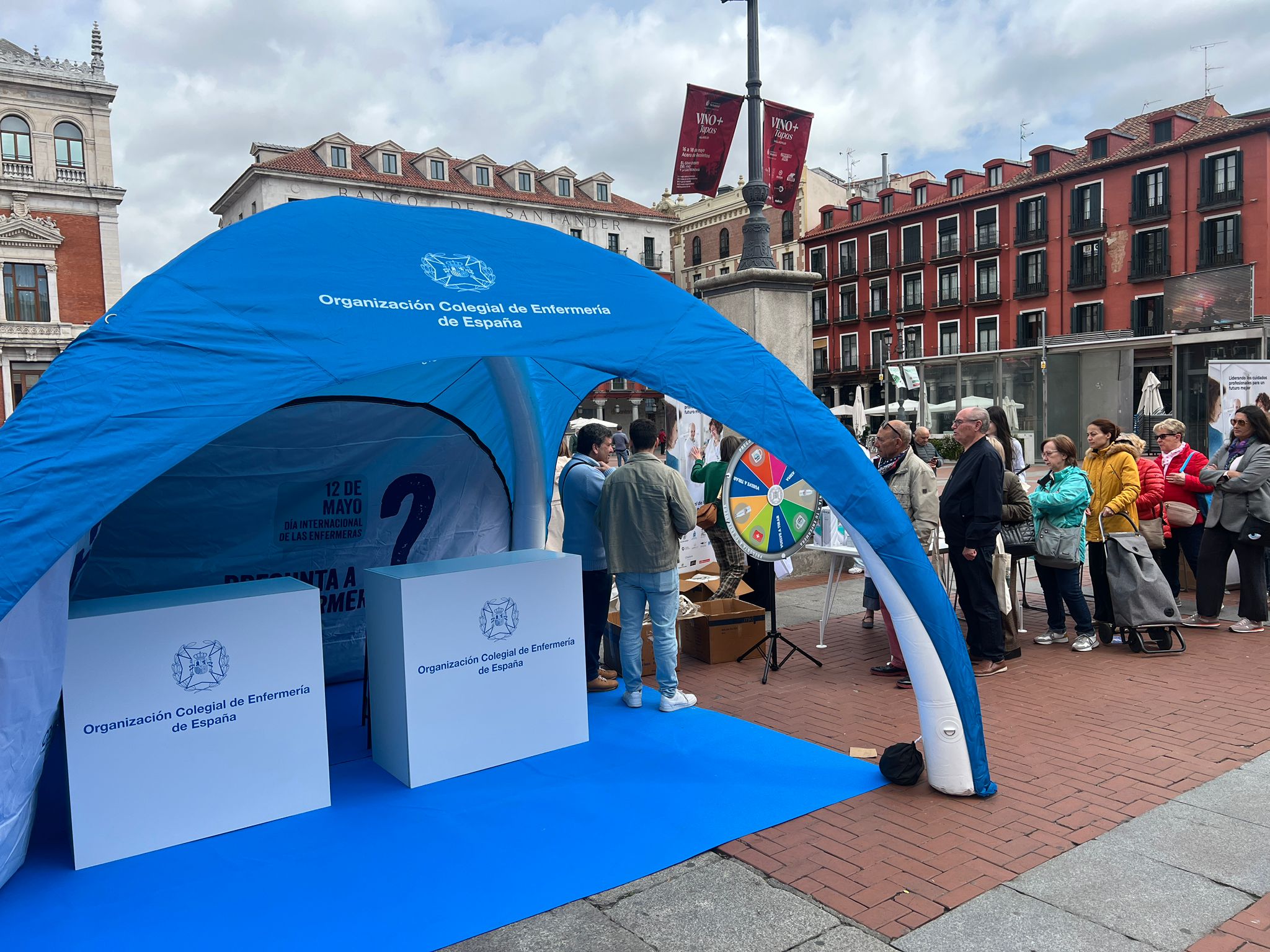 12 de mayo de 2025. Con motivo del Día Internacional de las Enfermeras/os el Colegio de Enfermería está presente hoy en la Plaza Mayor de Valladolid en el marco de la campaña promovida a nivel nacional por el Consejo General de Enfermería “Pregunta a tu enfermera” para difundir la ciencia del cuidado y tras una semana de actividades donde las enfermeras  han dado a conocer sus diferentes roles y reivindicado su función primordial para contribuir a la calidad de vida de las personas.
