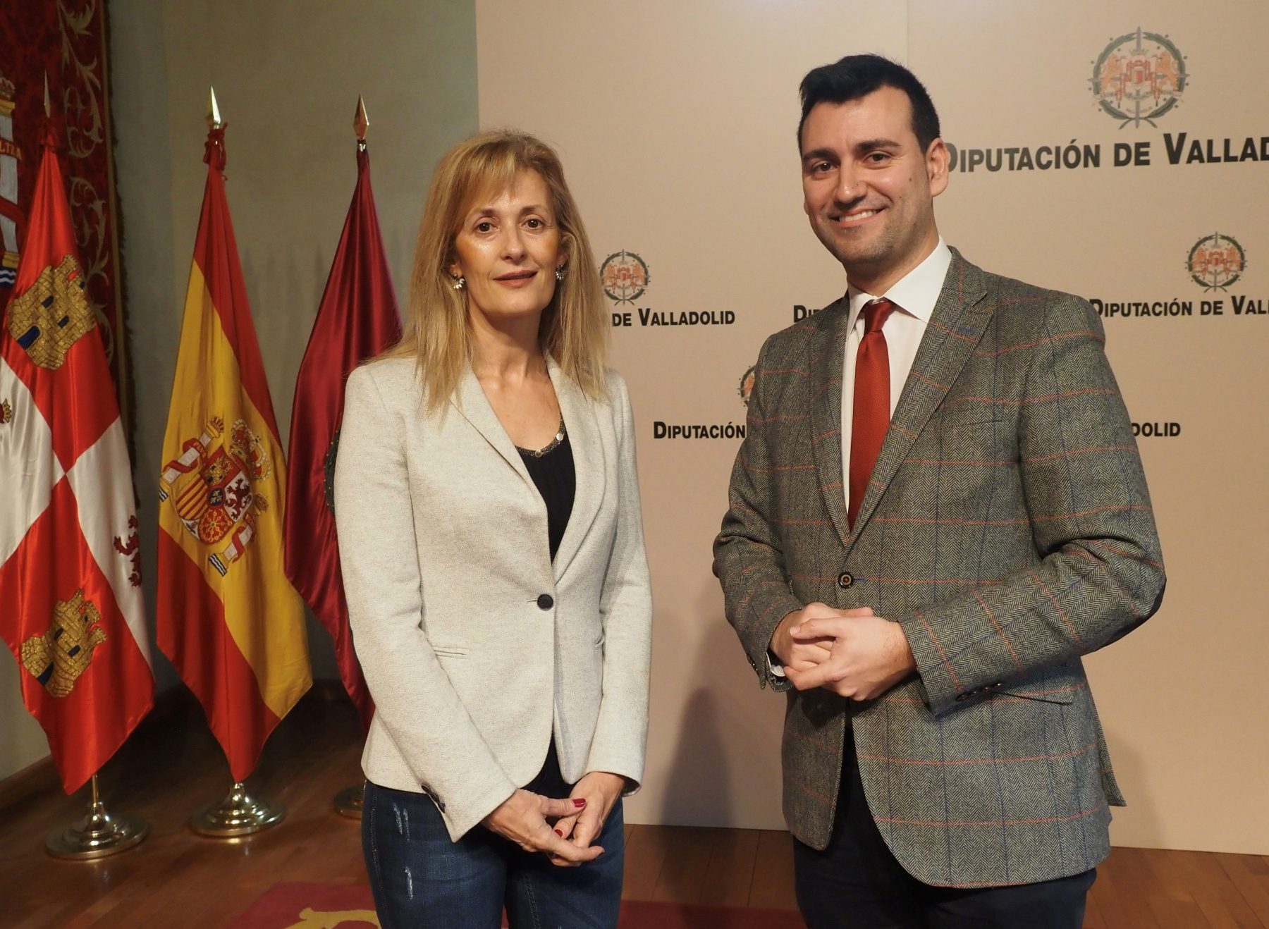 En la imagen la presidenta del Colegio de Enfermería de Valladolid (COEVA), Silvia Sáez Belloso, y el diputado de Servicios Sociales e Igualdad de Oportunidades, David Esteban Rodríguez que han presentado el convenio. Autor de la fotografía: Diputación de Valladolid
