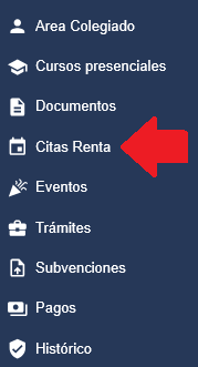 - Para solicitar la cita deberá acceder a su área personal (ENFERNET), en el apartado citas renta.