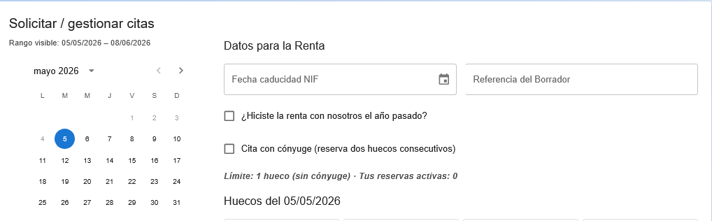 Con motivo de la campaña de la Declaración de la Renta 2025, y con el fin de garantizar una correcta atención dentro del tiempo asignado, les informamos de los requisitos imprescindibles para la gestión de su declaración.