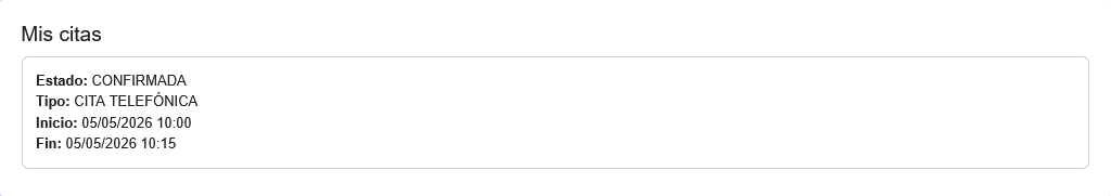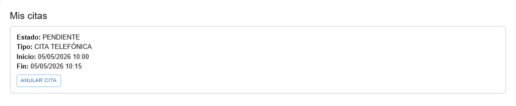 - Una vez solicitada la cita, aparecerá en el apartado mis citas su solicitud de cita con estado PENDIENTE.