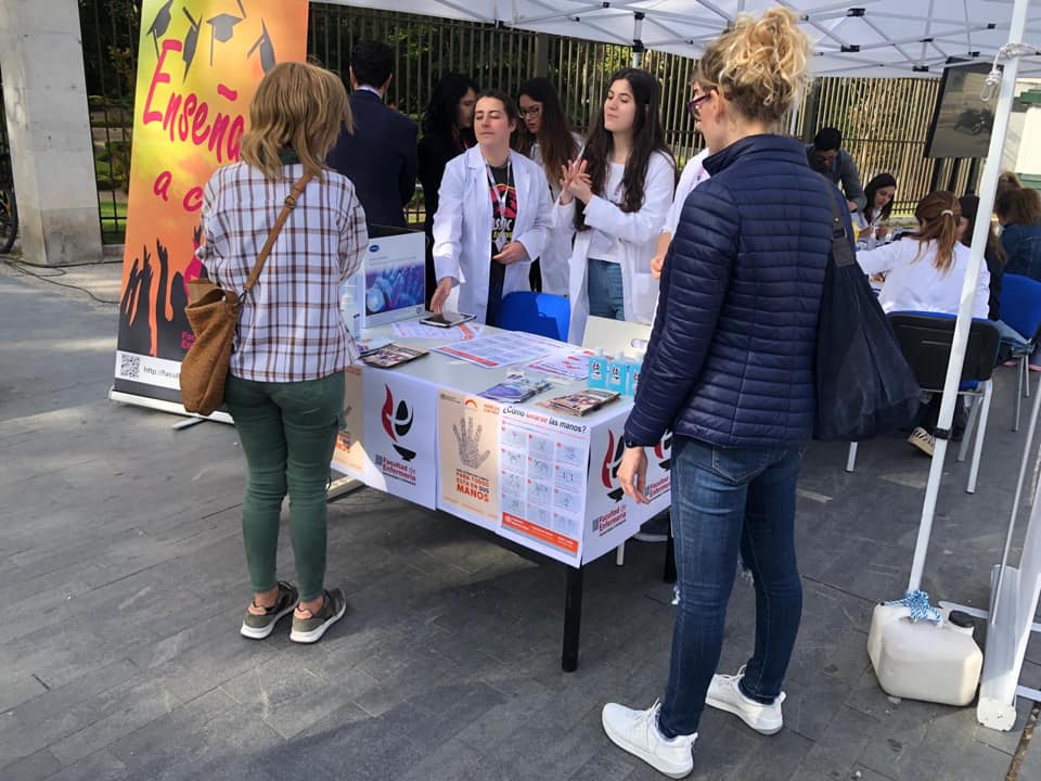 - En la carpa se realizan actividades de educación para la salud como la promoción de la higiene de manos y una encuesta sobre la consideración social de competencias enfermeras, a cargo de los estudiantes de la Facultad de Enfermería de la Universidad de Valladolid (UVA).