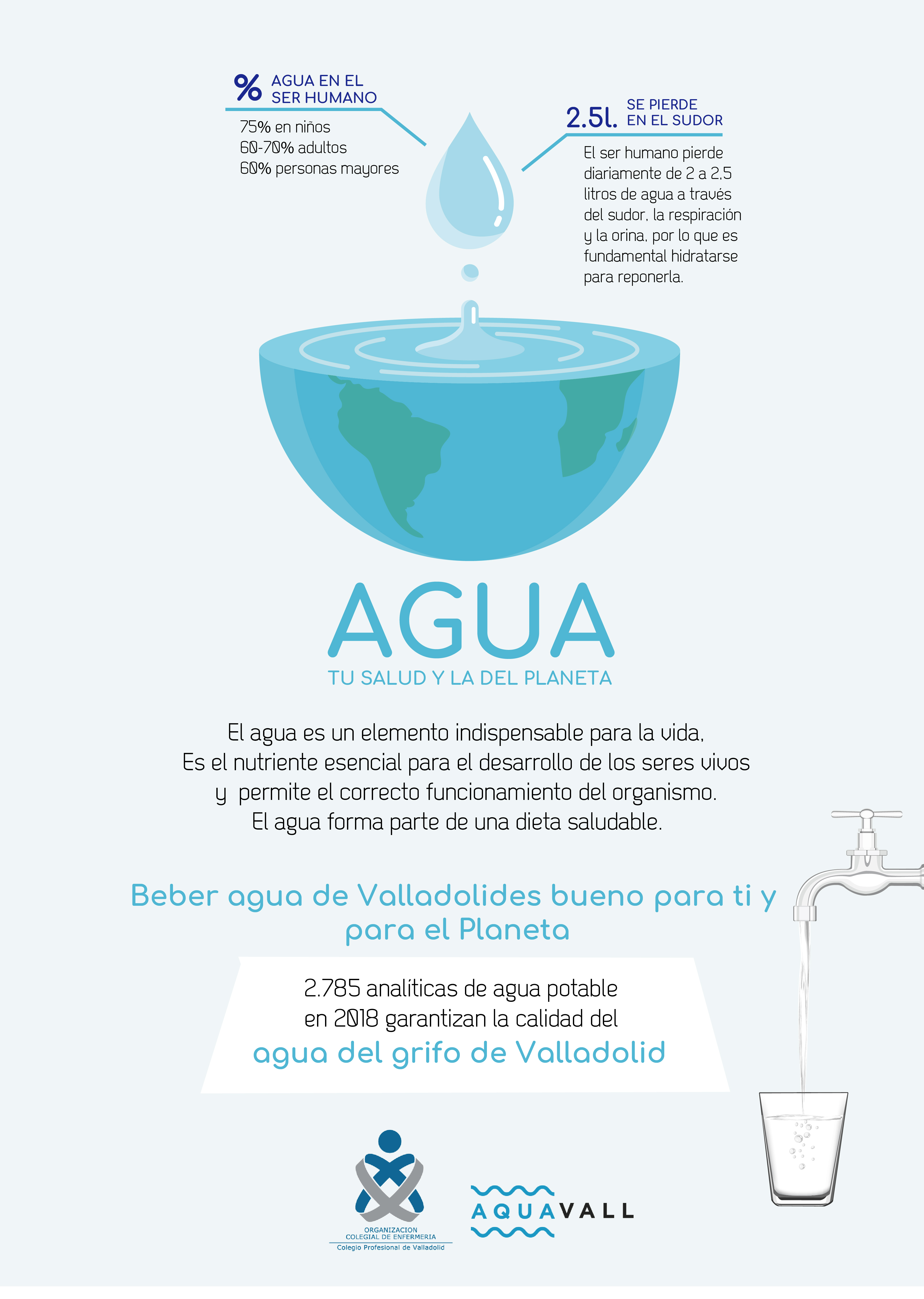 El Colegio Profesional de Enfermería de Valladolid tiene entre sus objetivos poner en valor socialmente la figura de la enfermera como promotora de salud y hábitos de vida saludables. “El agua es un elemento indispensable para la vida, es el nutriente esencial para el crecimiento y el desarrollo de los seres vivos y forma parte de una dieta saludable. Como enfermeras recomendamos la correcta hidratación para el buen funcionamiento del organismo y como complemento de un estilo de vida sano” ha señalado la presidenta del COEVA, Silvia Sáez Belloso, quien además ha recordado la importancia de reducir el uso del plástico para la salud humana y la del planeta.